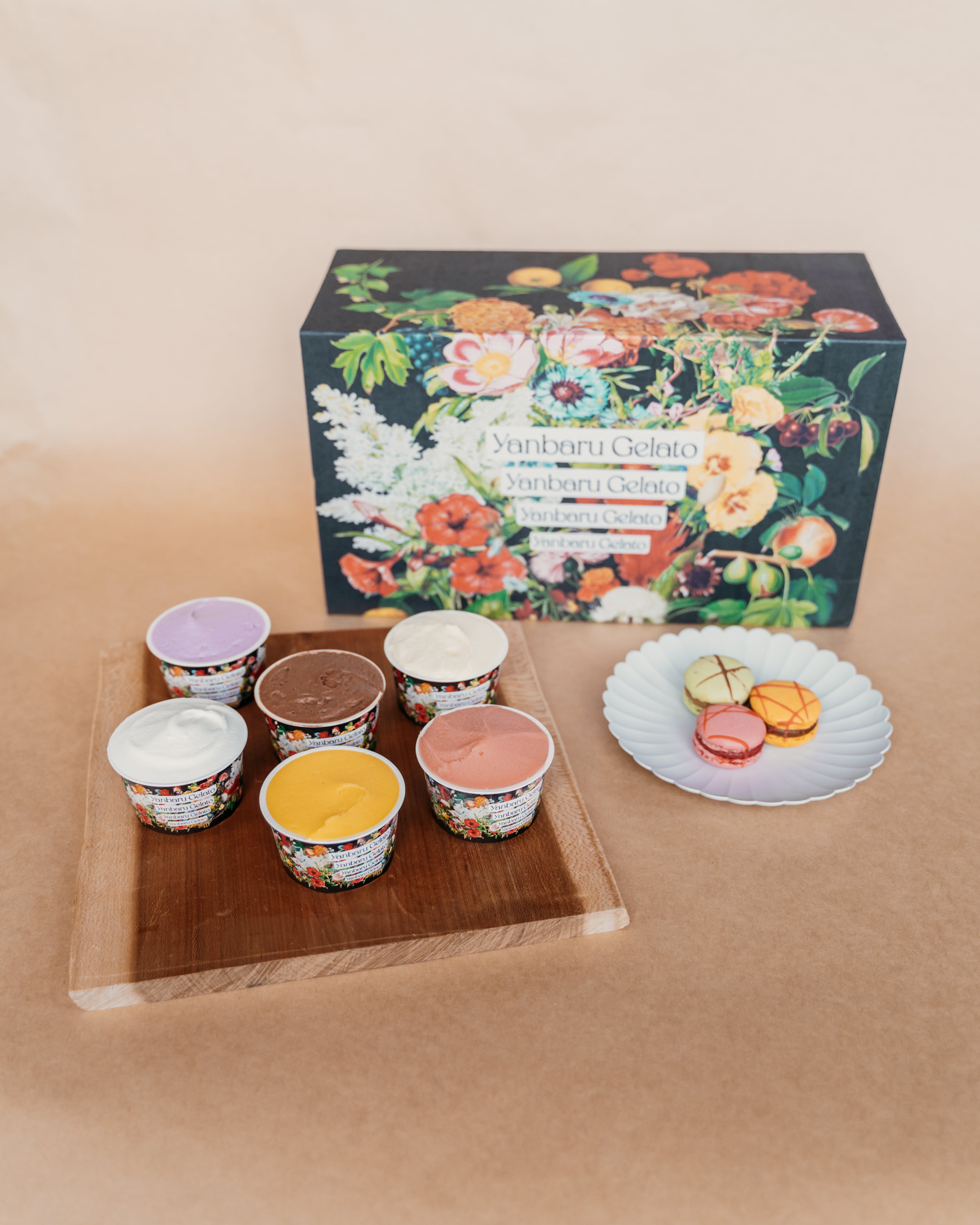 やんばるジェラートの人気基本フレーバーと、ラ ローズ ノワールのマカロンを組み合わせて、幅広い味をお楽しみいただけるセットです。