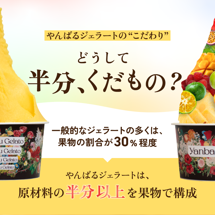 沖縄県産の新鮮なフルーツを使用した、美味しいサスティナブルなジェラートをお楽しみいただけます。お求めやすい価格で提供いたしますので、ぜひ、フルーツの美味しさを存分にご堪能ください。